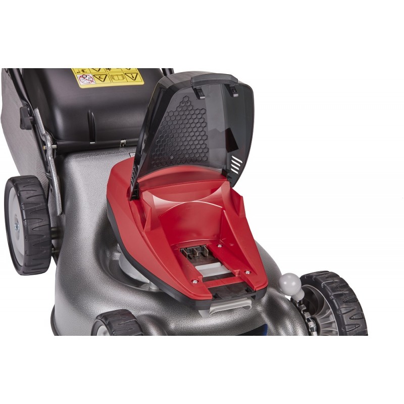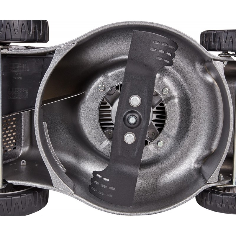 Wat deze grasmaaier echt opvallend maakt, is het indrukwekkende stalen maaidek met een royale maaibreedte van 41 cm. Dit maaidek is vervaardigd uit geperst staal, wat niet alleen resulteert in uitstekende duurzaamheid, maar ook in een buitengewoon strak maairesultaat. Het maaidek is bestand tegen de tand des tijds en kan zelfs de meest veeleisende klussen aan.